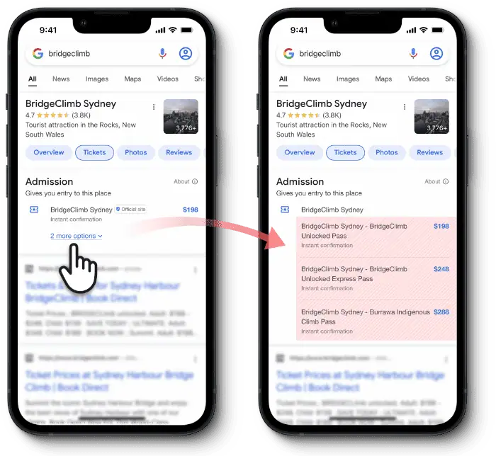 Google does have a few rules for tours and activities to be linked to POIs. For ticketed attractions, the tour or activity must include the admission in order to be listed along with it. For free attractions, the tour or activity must physically visit the POI and include a “meaningful experience”; for example, a walking tour that spends time at the POI would count, whereas a bus tour that simply drives past it would not.